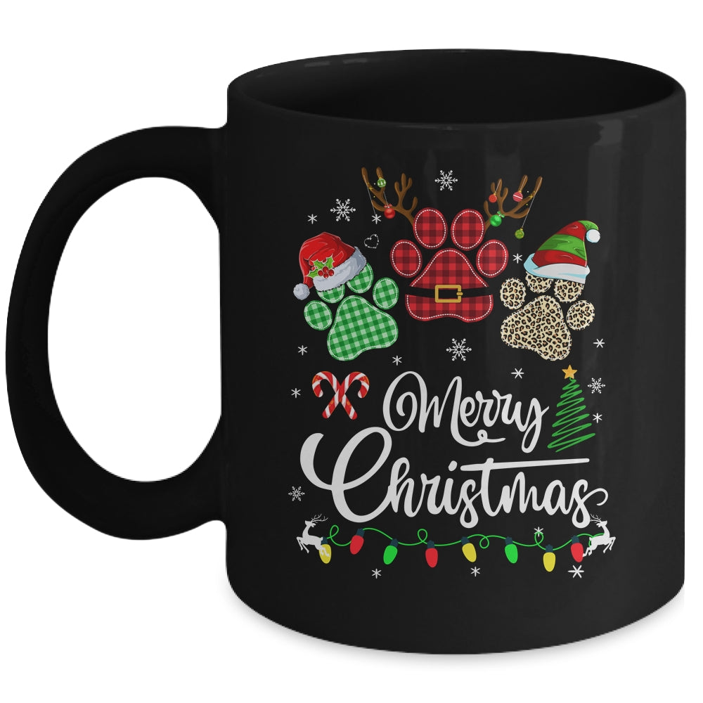 Merry Christmas Dog Paws Lights Buffalo Plaid Leopard Xmas