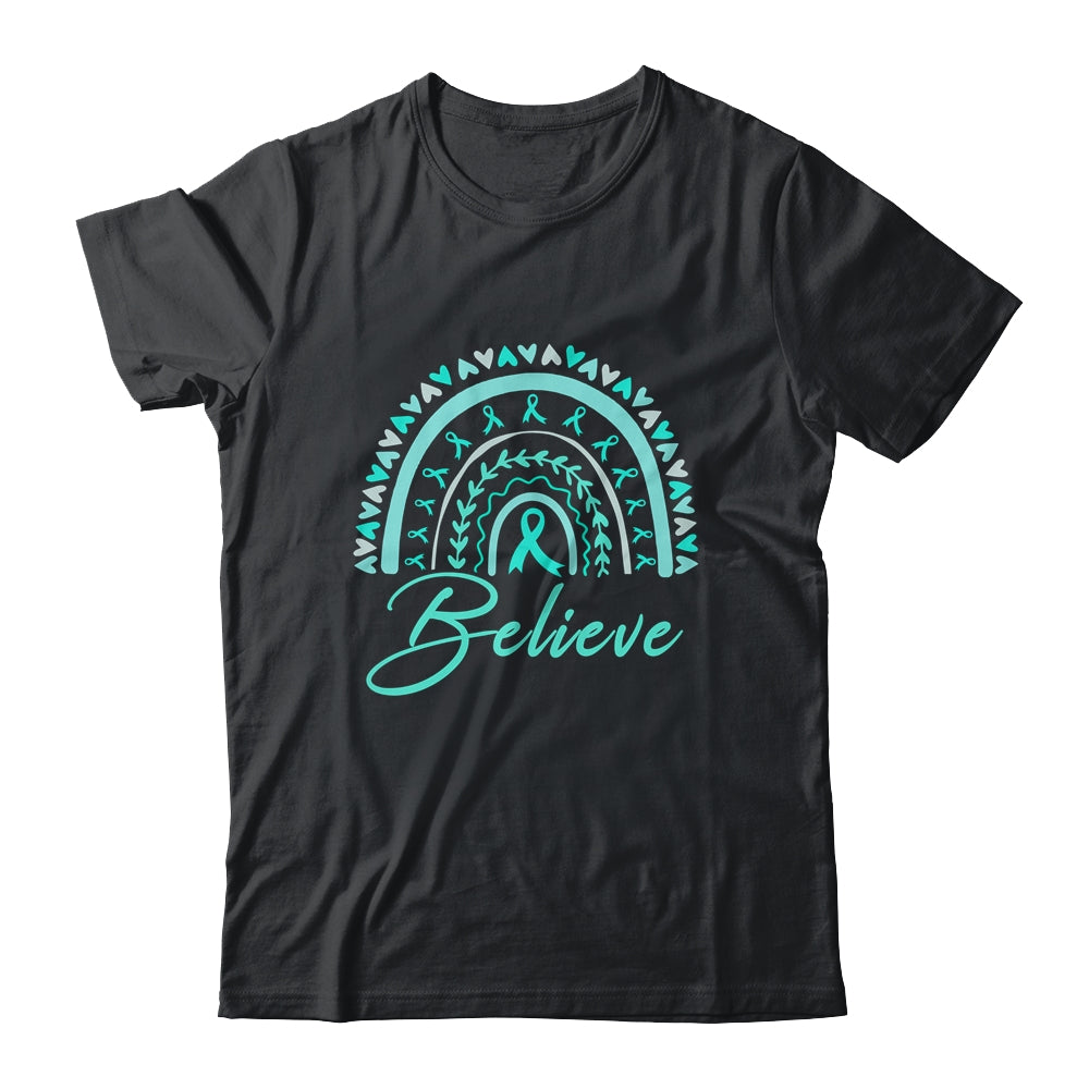 Believe Rainbow Ovarian Cancer Awareness Teal Ribbon Mug