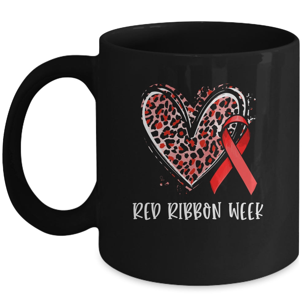 We Wear Red For Red Ribbon Week Awareness Heart Leopard