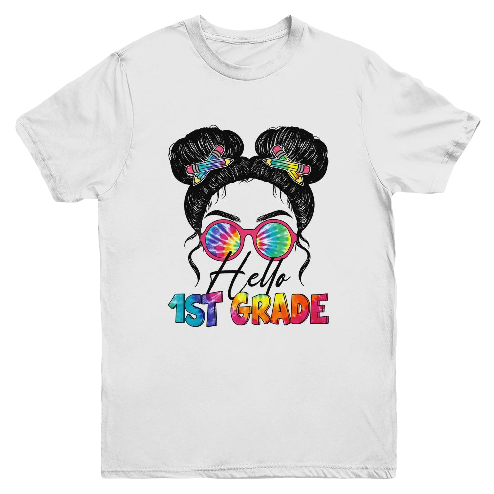 Hello 1st First Grade Messy Bun Back To School Tie Dye Girl Mug
