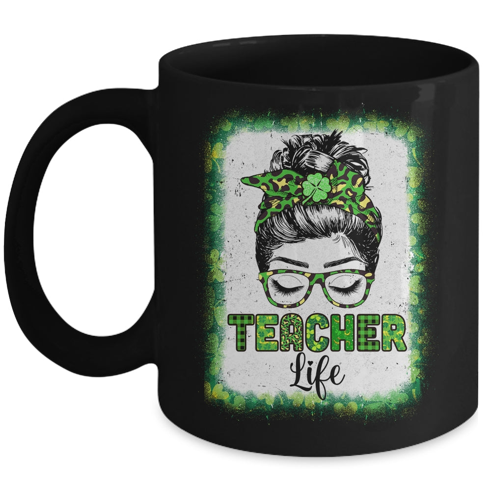Bleached Teacher Life Messy Bun Leopard St Patricks Day