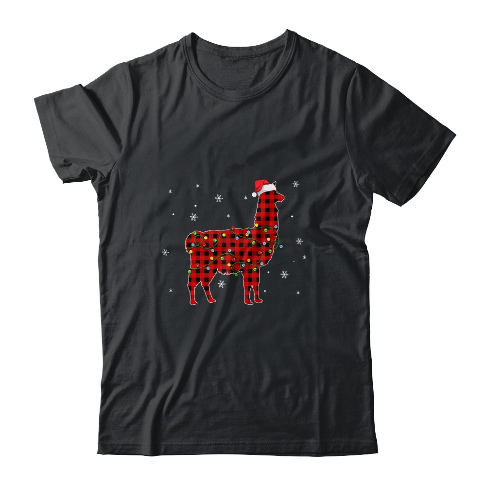 Red Plaid Llama Christmas Lights Santa Hat Pajamas Mug