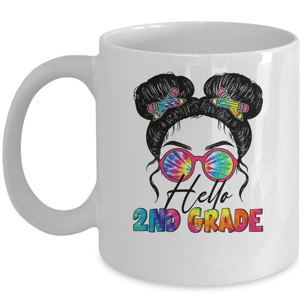 Hello 2nd Second Grade Messy Bun Back To School Tie Dye Girl Youth