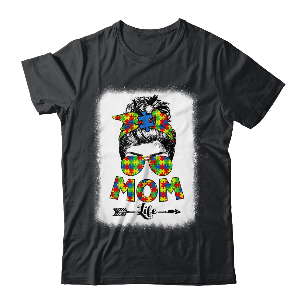 Autistic Autism Awareness Messy Bun Mom Life Bleached Mug