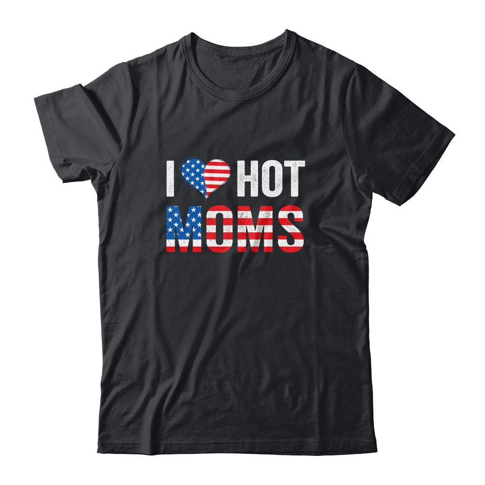 I Love Hot Moms Funny Red Heart Love Mother American Flag Mug