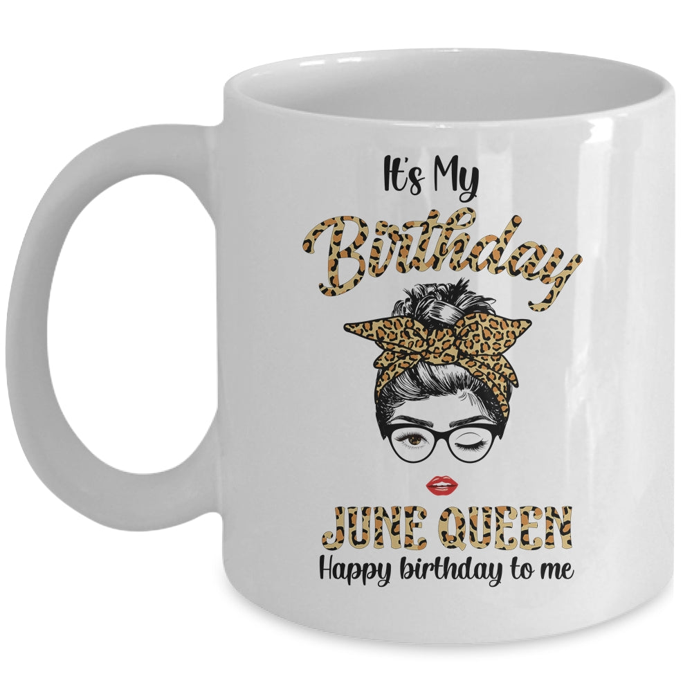 June Birthday Girl Queen Messy Bun Its My Birthday Leopard